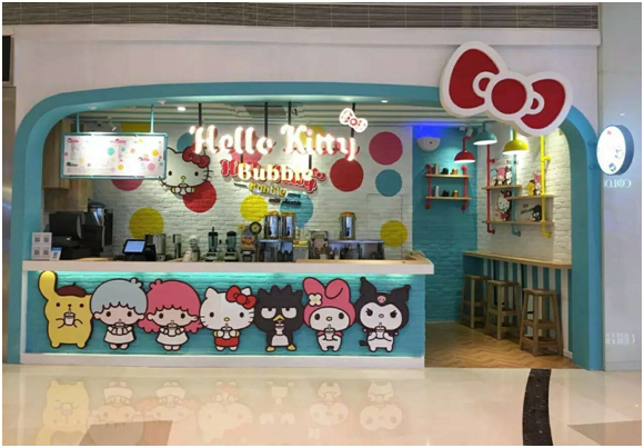 7月4日,全国首家Hello Kitty Bubble茶饮专卖店闪亮登场深圳海雅缤纷城。Hello Kitty Bubble茶饮店内除了萌萌的Hello Kitty以外,还有美乐蒂、双子星、酷洛米、布丁狗、酷企鹅等三丽鸥家族的可爱角色到来和“迷妹”们一起叹茶! 7月24日,Hello Kitty Bubble将迎来正式开业!开业期间“请喝”和“一元换购”2重优惠,诚意邀请“迷妹”一同畅饮!