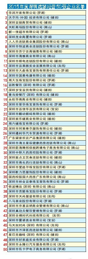 近日,深圳市连锁经营协会公布2015年度深圳连锁经营50强企业榜单,深圳连锁经营50强企业已成为中国商业“王牌军”。其中,深圳市海雅商业有限公司榜上有名。