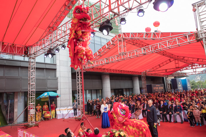现场锣鼓喧天,祥狮齐贺。领导嘉宾亲自为舞狮点睛,雄狮瞬间龙腾生风、威武雄壮,舞狮表演正式开始,雄狮扭身甩尾,动作惊险而又灵动,热闹祥腾。