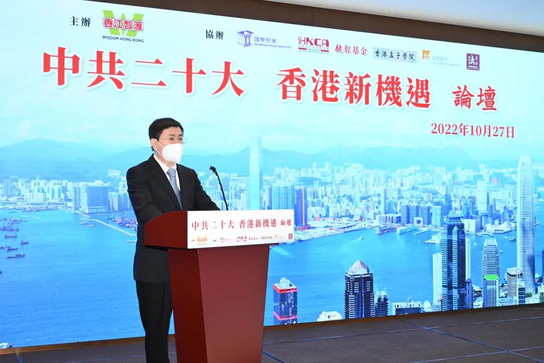 中联办研究部副部长李兵表示,党的二十大全面擘画了中国特色社会主义的宏伟蓝图,解决了当前我们往哪走、怎么走、谁带领走等重大问题,具有里程碑意义。为香港发展领航定向,也为香港未来发展开辟了广阔空间。只要全面贯彻二十大对香港工作的战略部署,充分发挥香港独特优势,抢抓机遇、用足政策,积极融入国家发展大局,主动对接“十四五”规划、“一带一路”倡议、粤港澳大湾区建设等国家发展战略,香港就一定能大展宏图、大有作为,在新的历史起点上创造新的辉煌。